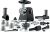 1 x assistance de remplissage, 1 x plateau de remplissage, 1 x presse-baies, 1 x filière à pâtisserie, 1 x poussoir, 1 x filière à saucisses, 1 x presse-agrumes